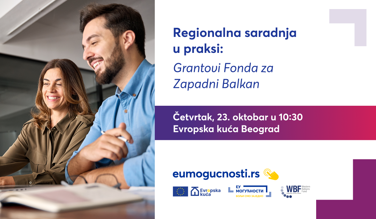 U četvrtak, 23. oktobra 2025. godine, sa početkom u 10.30 časova, Evropska kuća Beograd, u partnerstvu sa Fondom za Zapadni Balkan (WBF), otvara svoja vrata svima koji žele da saznaju kako se dobre ideje pretvaraju u regionalne projekte uz podršku Evropske unije.