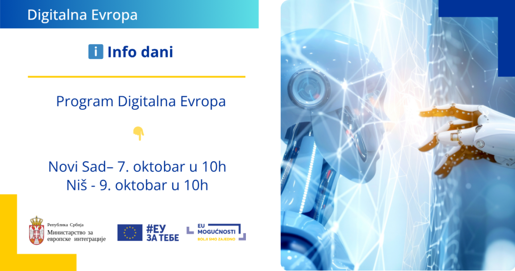 O tome će biti reči na info sesijijama o Programu Digitalna Evropa, koje će se održati u Nišu i Novom Sadu i to: